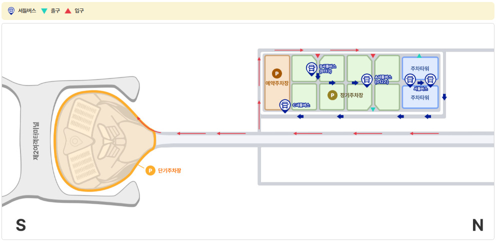 - 제2터미널: 장기주차장 (셔틀버스 이용 필요)