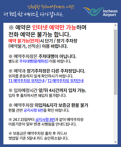 - 인천공항 공식 홈페이지에서 등록된 주차대행 업체인지 확인하세요.